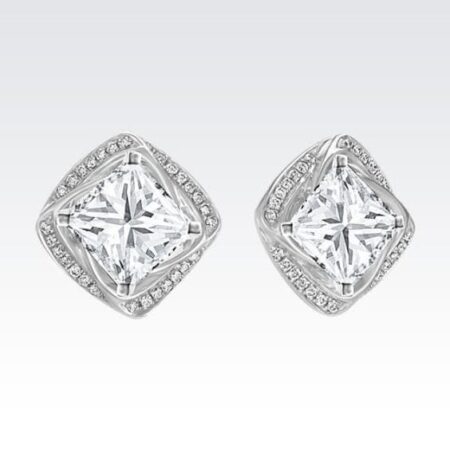 Check out this handpicked diamond stud in square shape with fine stone embellishments around. Explore more collection at our store.