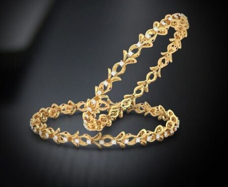 The marvelous setting of diamond stones on a 18kt gold design is spectacular. Take a glance at more such fantastic designs listed with Reeya!