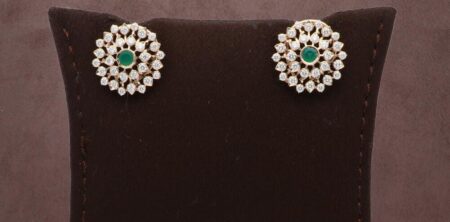 Delicate diamond earstuds encircled in a frosted halo design—where shimmer meets subtle charm.