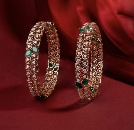 We have found a perfect match for your heavy look diamond set with these ethereal emerald and diamond kangan. The stunning leaf motifs with diamond setting is certainly a priceless possessioj to own!