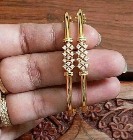 The magnificence of dazzling diamonds on plain gold bangles can be a sheer highlight. You can revive your ultimate diamond desire with these 18Kt diamond bangles set with diamond arrangement on it!