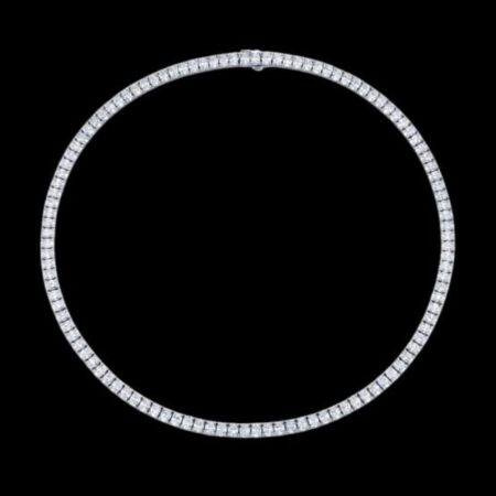 Discover radiant beauty with this stunning necklace, showcasing a continuous row of brilliant diamonds set in a platinum chain, making it a perfect statement piece.