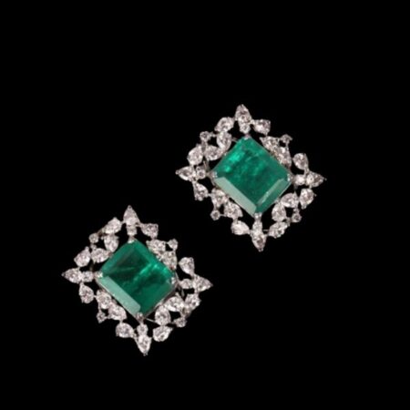 Stylish Emerald and Diamond Studs