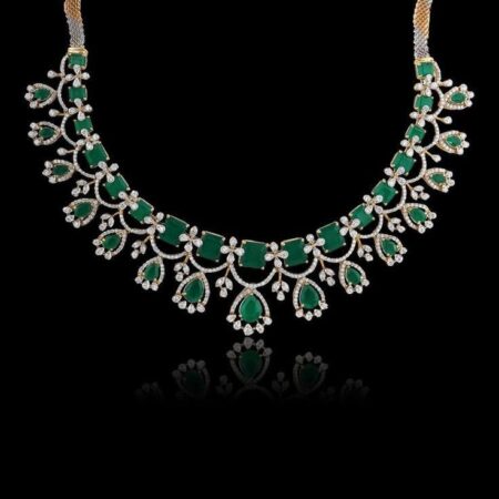 This diamond necklace showcases a cluster of diamonds meticulously arranged to create a breathtaking visual impact.