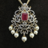 American Diamond And Ruby With Sea Pearls Hanging In The Bottom Pendant