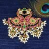 Gold-Plated Pink-Green Combo Peacocks Facing Pendant – 2